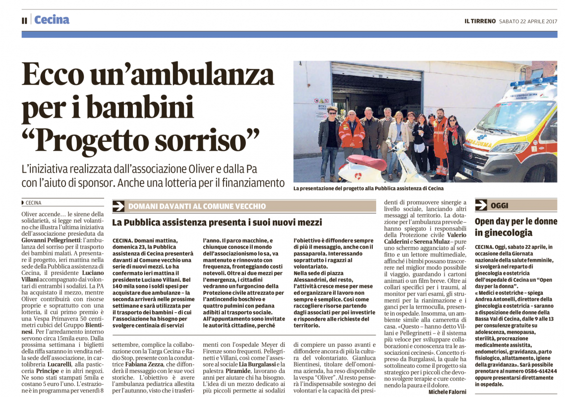 Progetti E’ la numero 73 l’ambulanza di Oliver. 16 Feb Summer Holiday 2017, Oliver sostiene l’Associazione Adolescenti e Cancro Winter Holiday 2017, Oliver sempre con l’Associazione Adolescenti e Cancro
