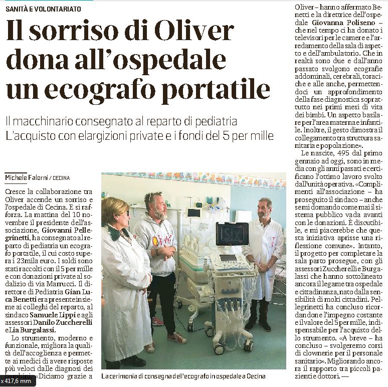 Progetti Pediatria ha il suo ecografo grazie ad Oliver 16 Feb Adolescenti e Cancro , Oliver finanzia la Summer Holiday 2018
