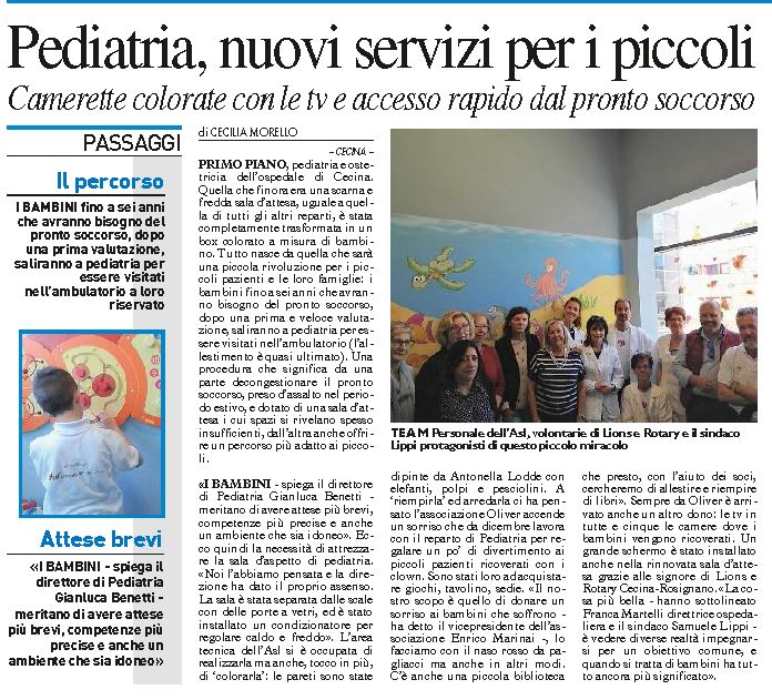 Progetti Nuove Camerette colorate e Tv in Pediatria a Cecina 16 Feb Oliver allestisce la palestra nel Villaggio del Sorriso di AGBALT Un sorriso per i Bambini, gli Olivernauti sbarcano in pediatria